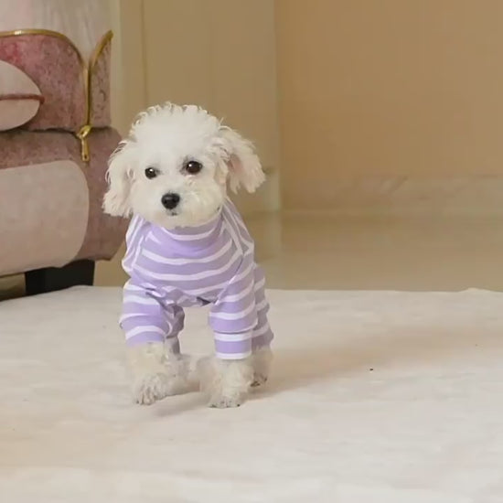 Our four-legged dog onesie provides complete coverage to keep your pet warm and comfortable at home. Perfect for chilly nights, post-bath drying, or stylish lounging!